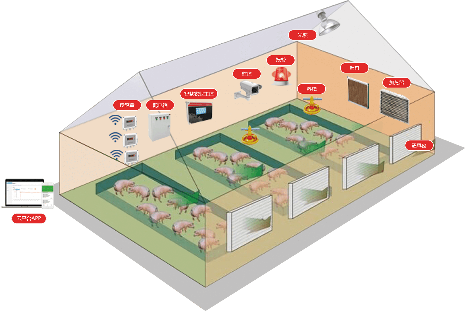 公司以生产销售畜牧养殖风机、环境控制设备为主,可为客户定制各种养殖配套设备。